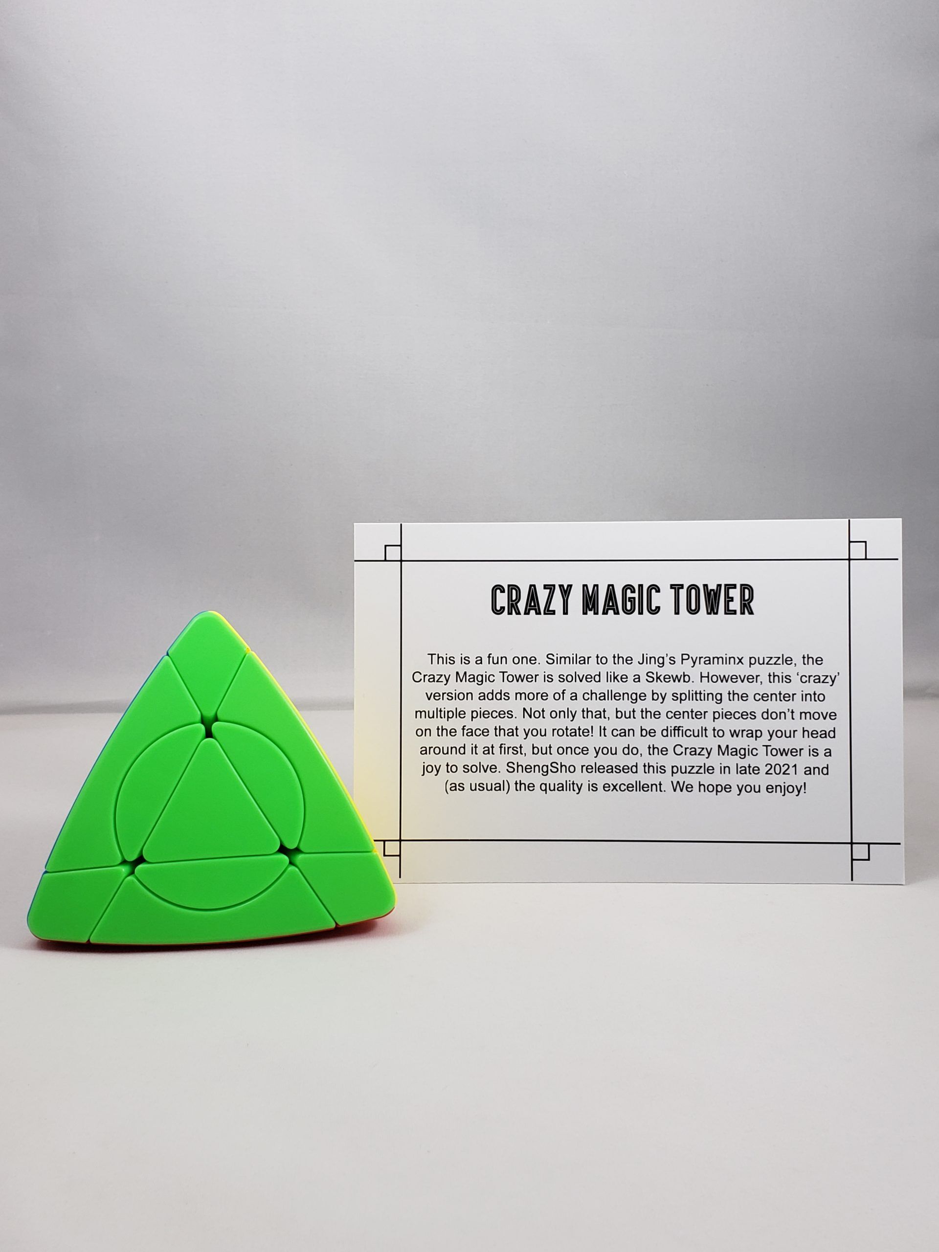This is a fun one. Similar to the Jing’s Pyraminx, the Crazy Magic Tower is solved like a Skewb. However, this ‘crazy’ version adds more of a challenge by splitting the center into multiple pieces. Not only that, but the center pieces don’t move on the face that you rotate! It can be difficult to wrap your head around it at first, but once you do, the Crazy Magic Tower is a joy to solve. ShengShou released this puzzle in late 2021 and (as usual) the quality is excellent.